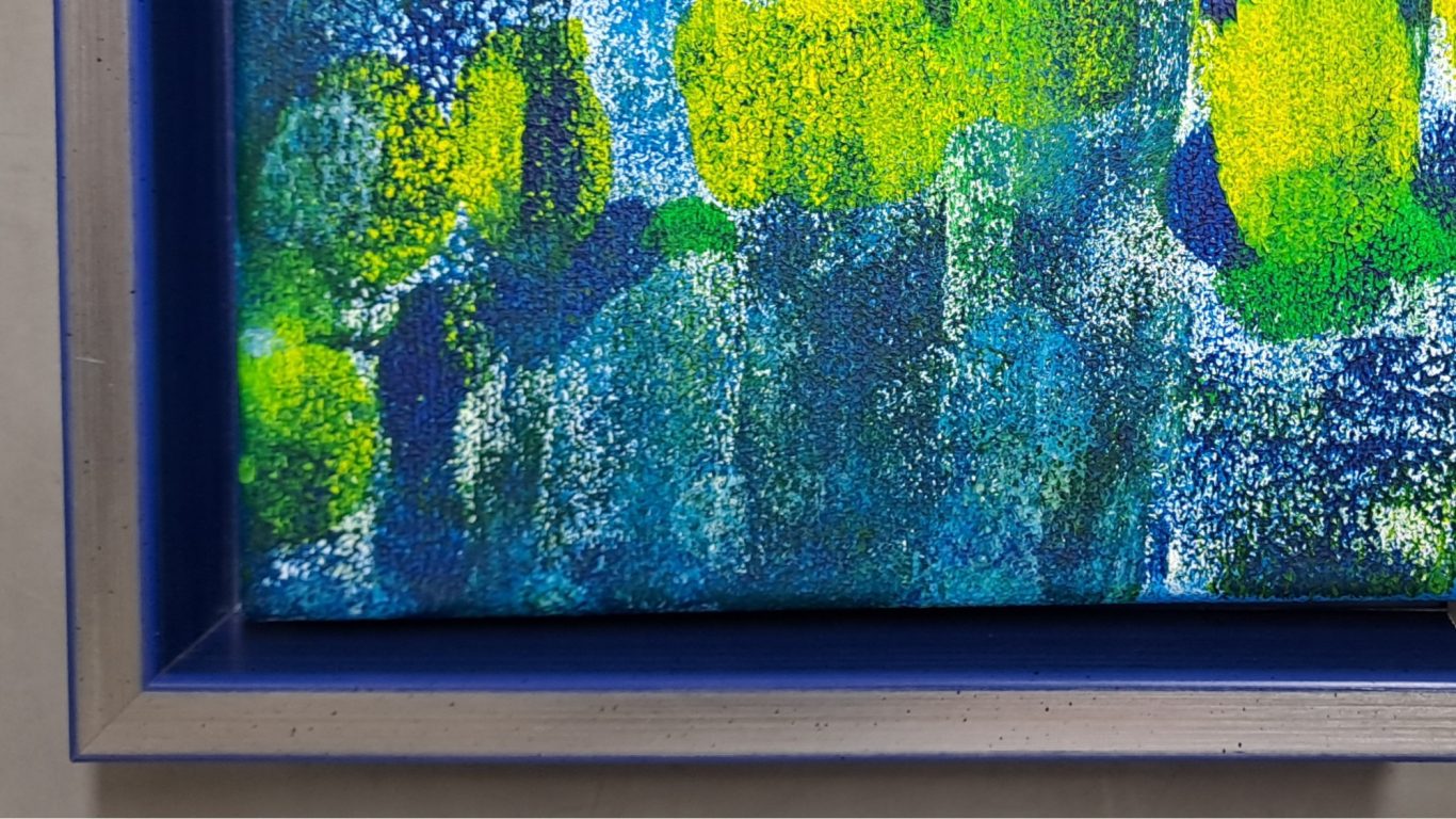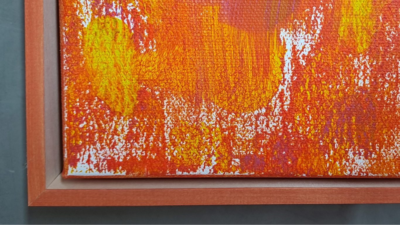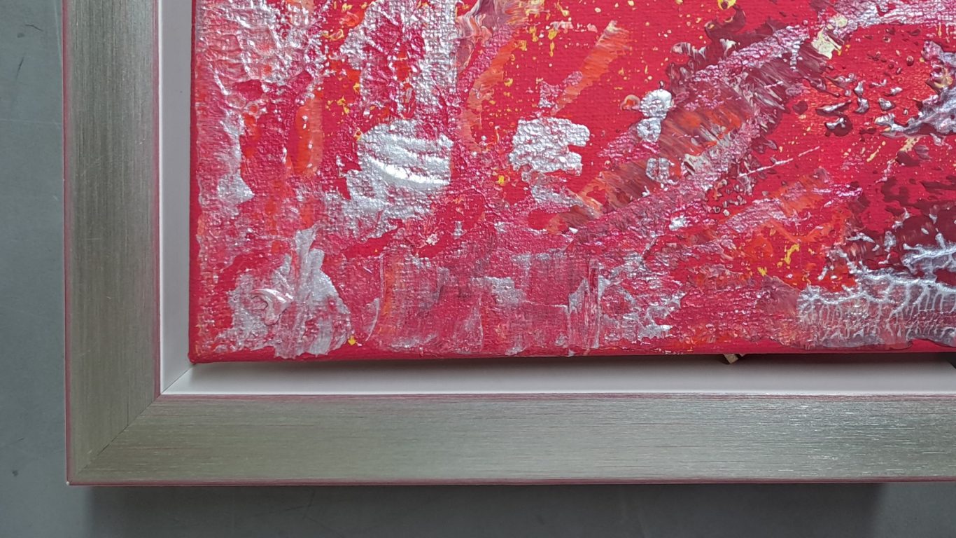 Durch die seitliche Bemalung aller vier Seiten wirken die Kunstwerke bereits sehr dekorativ. Eine Rahmung kann allerdings den Bildinhalt weiter aufwerten. Für die Gemälde empfehlen sich vorzugsweise Schattenfugenrahmen, die den Blick auf das Bild ohne störende Reflexionen durch eine Glasscheibe ermöglichen. Die Fuge lässt das Gemälde im Rahmen scheinbar schweben und verleiht dadurch dem Gemälde einen besonderen Reiz. Die folgenden Beispiele mögen einen ersten Eindruck vermitteln.